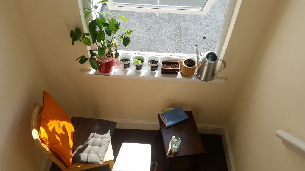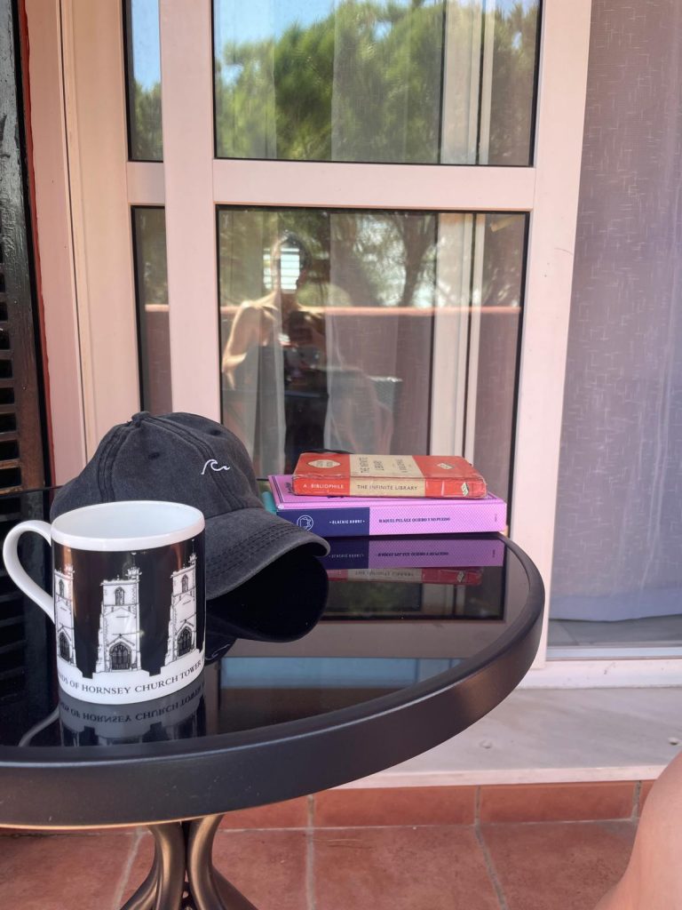 Ich beginne den Morgen damit, mein neues Königreich zu erkunden. Mein L-förmiger Balkon ist mit orangefarbenen Fliesen verkleidet, die einen angenehmen Kontrast zum türkisfarbenen Himmel bilden. Auf einer Seite stehen Pienien, die bis zum Balkon reichen, und den Eindruck vermitteln, in einem Baumhaus zu sitzen, wenn man auf einer Sonnenliege liegt und hinausschaut. Ein paar Meter weiter rechts sehe ich ein Fitzelchen Atlantik in der Ferne schimmern. Es ist ein Morgen, der sich schon wie eine Erinnerung anfühlt. Spatzen fliegen in hohen Bögen über den Himmel. Ihr Zwitschern vermischt sich mit dem mechanischem Knirschen des Müllwagenarms, der die Container unter meinem Balkon leert. Mit Abfahl bespickter Luxus.