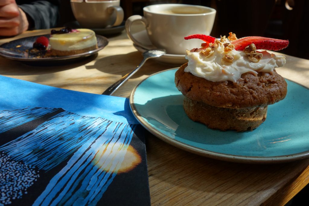 Ich und das neueste Trendgebäck in einem ruhigen Café.