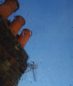 I love that this piece on rain should be inspired by pondering a lack thereof. I have been stood in my bedroom, hairdryer in one hand, cleaning cloth in the other, unsure of what to do. You see, on this beautiful grey Sunday morning, I find myself trapped in a predicament that is representative of nothing less than the global struggle for water. That is the struggle of having too much of it in one place and not enough in another. On one hand, there is the water stain above my bed that grows every time it rains, expanding its damp centre further and further across the wall, its edges blooming into finely undulating, brown lines on white background. Its slow but steady expansion points to expensive structural damage on our roof and has been causing nightmarish visions of waking up covered in a brown sludge from a pipe that couldn’t take another drop. On the other, there is the massive yellowish seagull turd that has become encrusted on one of our slanted roof windows due to a lack of rain, throwing an ominously gloopy shadow on our bed sheets whenever the sun is out.