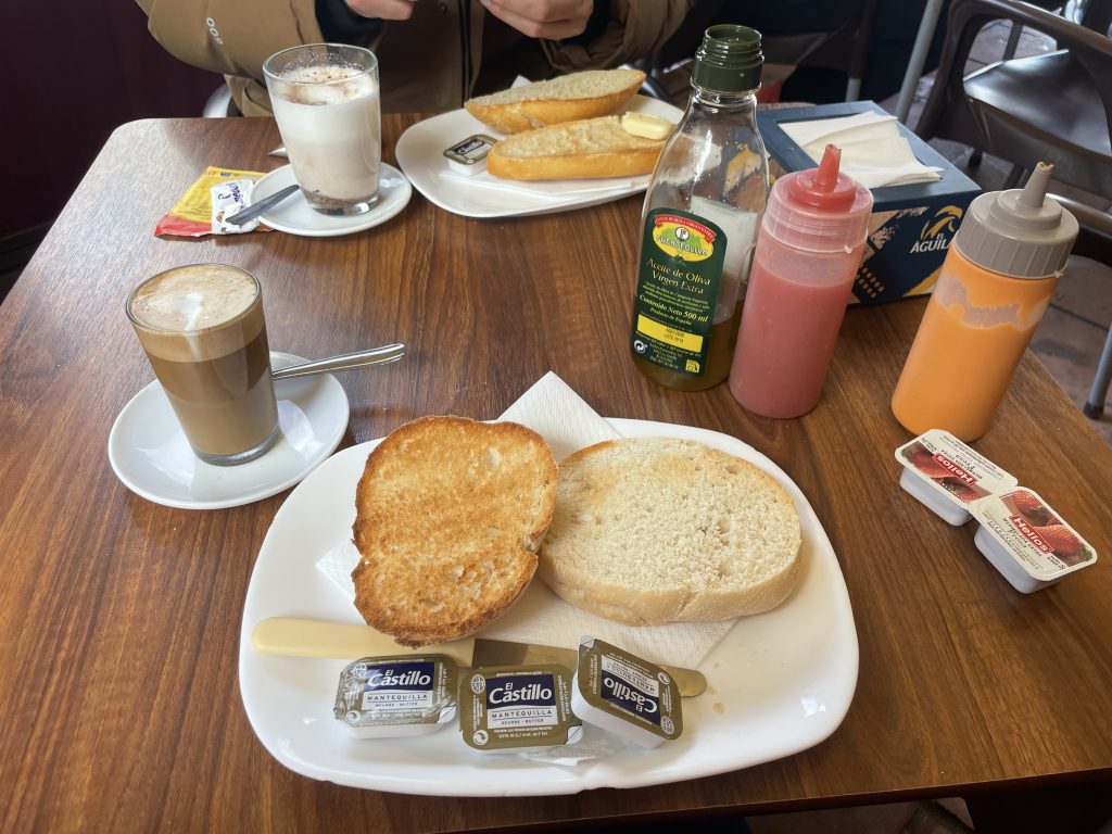And I see it in my retirement future for what it means. If there’s a mollete in my future, it means that I will have resisted the dictate of healthy avocado fats, showing a carby middle finger to the fetishization of nutritional balance. It means that buddha bowls and poached eggs invading breakfast cafes even in this most remote part of Europe with their filterable sameness will not have conquered all, but reached a peaceful co-existence with older, simpler options. Now that’s what I call balance. Staunchly opposing plasticised physical fixes, it means the mollete’s wheat dome will be the only firm bun left in my life. It means that global trade routes will still be functioning. Spain will be a desert by 2061, so no way I retire here, making my future breakfast ritual a result of solid import-export transactions. It means that we haven’t killed all plants. Because that’s what wheat is after all. Mollete: sustenance, peace, life. Plus, it is soft enough for any denture challenges that may come my way.